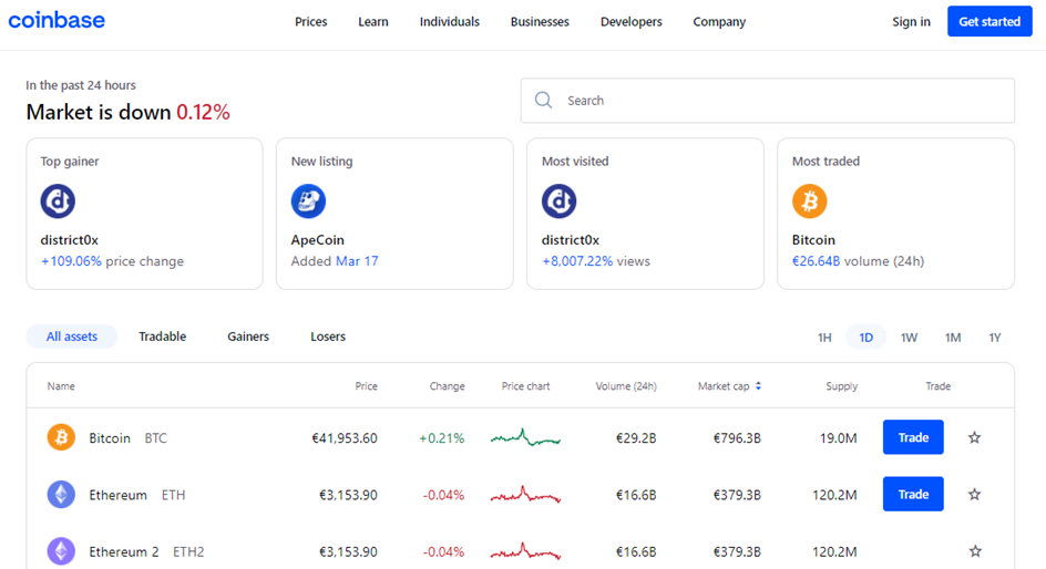 Many people recognize Coinbase as a popular cryptocurrency exchange and software wallet, but it also provides important insights into hundreds of different cryptocurrencies. On the Coinbase “Prices” page, you can access a wealth of information about your chosen coin, such as price charts, retention time, popularity, and trading activity.