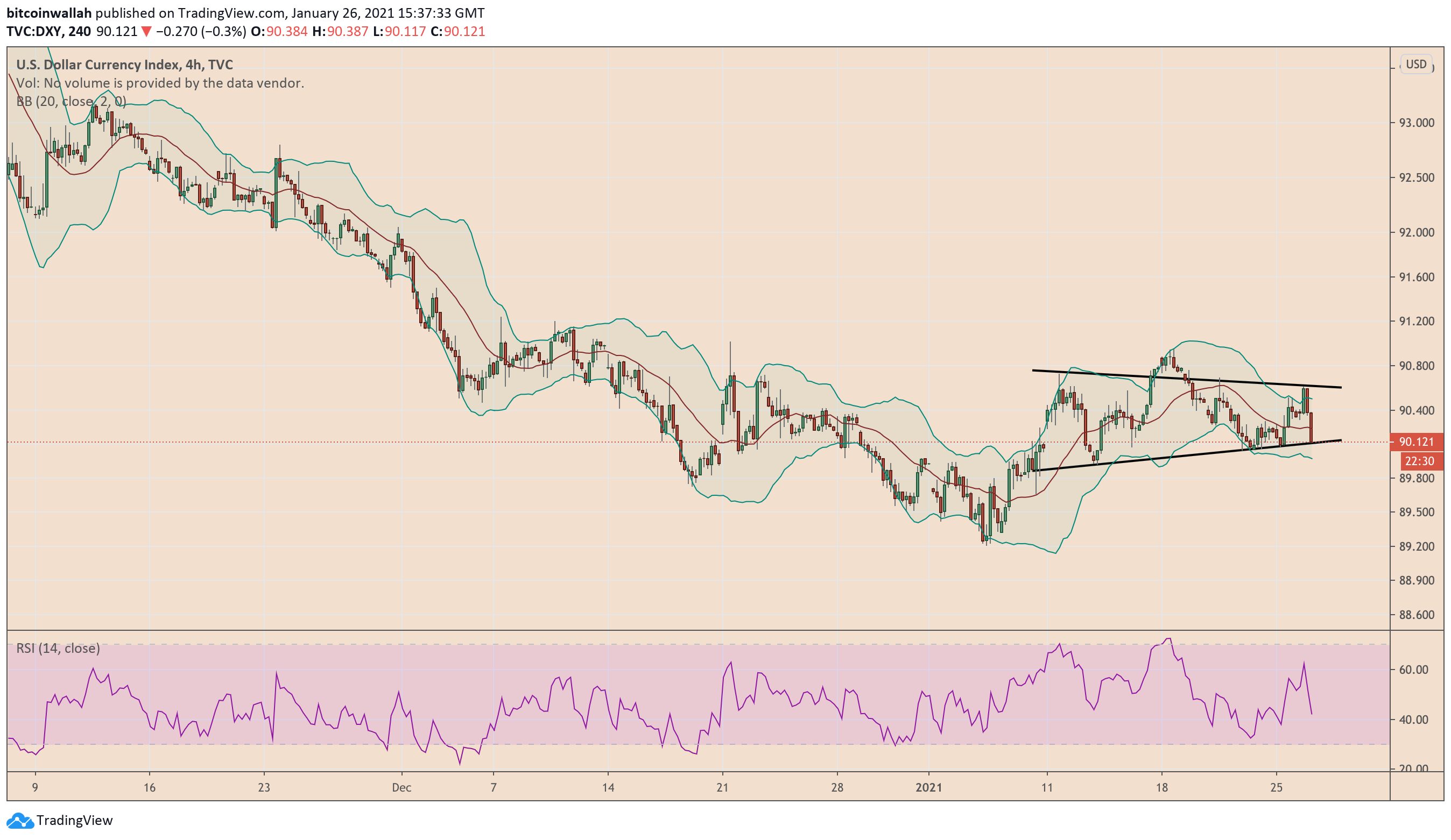 The US central bank expects to maintain its dovish tone as its official meets for their first policy meeting of 2021 on Wednesday. That is particularly bullish for Bitcoin as more investors tend to purchase it against the Fed’s unlimited bond-buying (which keeps the Treasury yields lower) and near-zero interest rates.